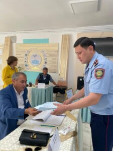 Ең алғашқылардың бірі болып Т.Рысқұлов ауданының әкімі Ерболат Садырқұлов алғашқылардың бірі болып, сайлау учаскесіне барып, азаматтық көзқарасын білдірді.