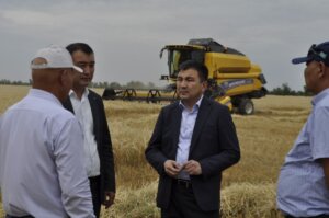 Алғашқы орақ салу шарасына аудан әкімі Садырқұлов қатысып, астықтың мол болуына тілектестік білдірді.
