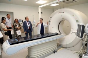 Орталық директоры Айбаз Әлиханов қонақтарға экскурсия жасап, мамандармен таныстырды. Оның айтуынша, көпсалалы онкология және хирургия орталығының мақтанышы – радиациялық терапияның жаңа буынына арналған «Elekta Versa HD» сызықтық үдеткіші. Ол кез келген локализацияның және кез келген конфигурацияның ісіктерін емдеуге мүмкіндік береді. Сондай-ақ, орталықтағы қол жетімді тағы бір бірегей сәулелік терапия аппараты – «Theratron Equinox 80» гамма терапия аппараты.