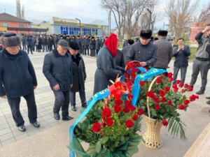 Гүл қою рәсімі қала әкімі, қалалық мәслихат хатшысы, қоғамдык кеңес пен ардагерлер кеңесінің төрағалары, Д.Конаев атындаты халықаралық қордың Жамбыл облыстық бөлімшесінің мүшелері,этномодени орталықтардың мүшелерінің қатысуымен өтті.