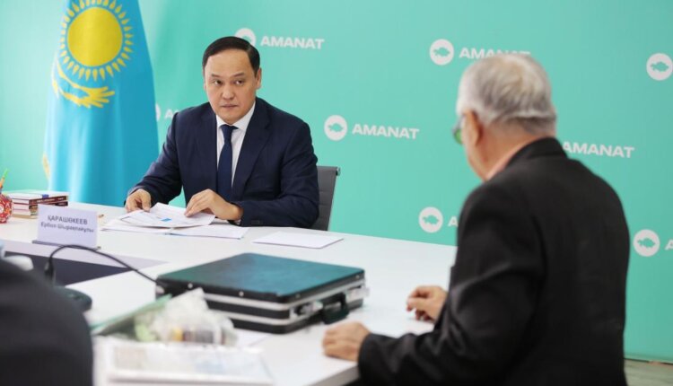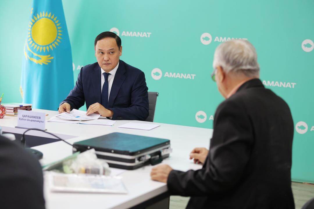 Жамбыл облысының әкімі Ербол Қарашөкеев «AMANAT» партиясы өңірлік филиалының қоғамдық қабылдау алаңында азаматтарды жеке мәселелері бойынша қабылдады.