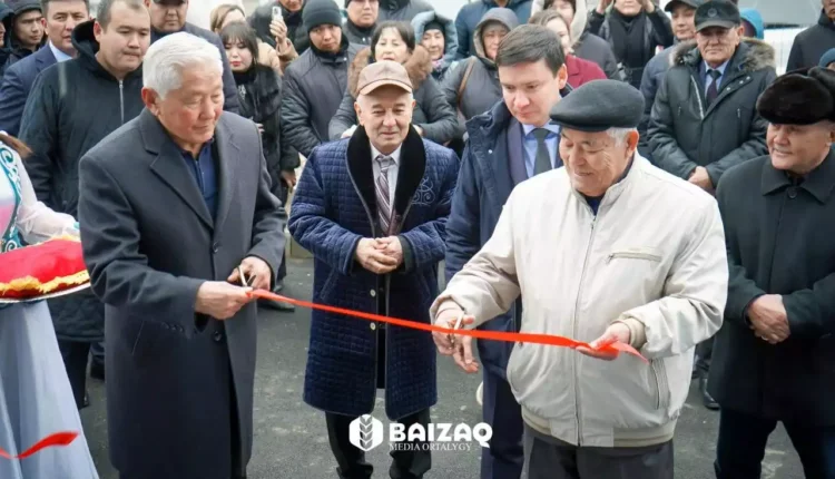 Бұдан соң аудандық ардагерлер кеңесінің төрағасы Бердібек Омаров пен Байзақ ауданының құрметті азаматы, спорт ардагері Асқар Смайылұлы ашылу лентасын қиып, ақжаулықты әжелер тәттіден шашу шашты. Жиналған көпшілік ішке еніп, жаңа нысанды аралап көрді. Шара барысында аудан әкімі «AQ Бидай – 2025» VIII республикалық ойындарында кіші футболдан 3 дүркін чемпион атанған Байзақ ауданы командасына бірыңғай спорттық киімдерді табыстады.