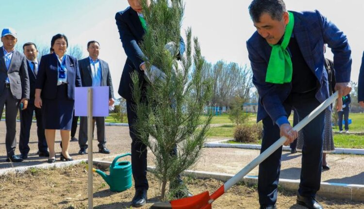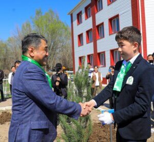 Аймақ басшысы мектеп оқушыларымен бірге ағаш көшеттерін отырғызып, жақсы тілек тіледі.