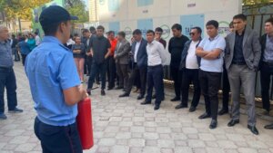 Олар «Тараз «ӘКК» АҚ компаниясы және еншілес ұйымдарының қызметкерлерімен түсіндіру жұмыстарын қамтыды. Мұндай жаттығудың мақсаты өрт кезінде қиын жағдайларда дұрыс әрекет ету, автоматты өрт дабылын қолдану, өрт сөндіру құралдарын дұрыс пайдалану және шұғыл эвакуациялау кезінде талаптарды сақтау болып табылады.